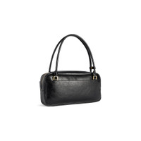Hourglass Flat Bowling Bag in black peach calfskin, shiny gold hardware PRODUCT DETAILS • Peach calfskin • Bowling bag • Two handles with one handle clip • Shoulder carry • Shiny gold B logo hardware • Front pocket with flap • Zipped closure • 1 main compartment • 1 inner flat pocket • 1 flat pocket at back • Cotton canvas lining • Made in Italy Material: calfskin