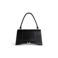 Hourglass Hinge Medium Handbag in black smooth calfskin with aged-silver hardware is in several looks of Balenciaga’s Spring 24 Collection. PRODUCT DETAILS • Dimensions: L12 x H6,7 x W4,1 inch • Handle drop: 6,7 inch • Smooth calfskin • Handbag • Curvilinear base • One folding handle • Adjustable and removable crossbody strap (20,5 inch) • Studded magnet closure • Aged-silver B logo hardware • 1 back pocket • 1 inner zipped pocket • 1 inner patch pocket • Nappa lambskin lining • Made in Italy • Wipe with a soft cloth Material: 100% calfskin