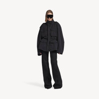 Hourglass Parka in black cotton and polyamide canvas for Women PRODUCT DETAILS • Cotton and polyamide canvas • Hourglass shape, cinched at waist • High collar • Concealed snap and zip closure • Shoulder tabs • 4 flap pockets on chest and hips • Drawstring waist • Hook-and-loop fastening at cuffs • Made in Italy Main material: 60% cotton, 40% polyamide