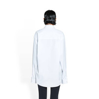 Hourglass Shirt in white poplin PRODUCT DETAILS • Poplin • Hourglass fit • Button-down collar • 7 button front • 1 patch pocket at chest • Long sleeves • Buttoned cuffs • Rounded bottom • Balenciaga engraved buttons • Made in Italy • Dry cleaning • Model is 177cm / 5'10'' and is wearing a FR size 36 Material: 100% cotton