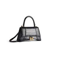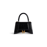 Women's Hourglass Small Handbag Crocodile Embossed in Black