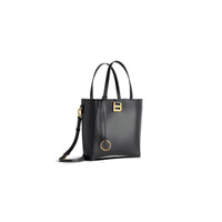 Hourglass Soft Small Tote Bag in black smooth calfskin, shiny gold hardware PRODUCT DETAILS • Dimensions: L7,8 x H8,2 x W3,1 inch • Smooth calfskin • Tote bag • Curvilinear base • Two handles (drop: 4,7 inch) • Adjustable and removable strap (drop: 25,2 inch) • Shoulder, crossbody and hand carry • Removable key holder with one split ring logo engraved • Shiny gold B logo hardware • Snapped closure • 1 main compartment • 1 inner zipped pocket • Suede-like fabric lining • Made in Italy Material: calfskin