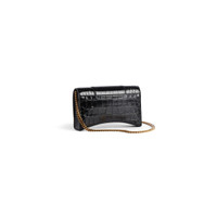 Women's Hourglass Wallet With Chain Crocodile Embossed in Black