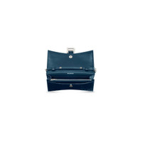 Hourglass Wallet With Chain in dark blue shiny crocodile embossed calfskin, aged silver hardware PRODUCT DETAILS • Dimensions : L7,6 x H4,7 x W1,9 inch • Shiny crocodile embossed calfskin • Wallet with chain • Curvilinear shape • Removable chain strap (19,6 inch) • Studded magnet closure • Aged silver B logo hardware • 1 inner zipped pocket • 6 inner card slots • 1 patch pocket at back • Nappa lambskin lining • Made in Italy • Wipe with a soft cloth Material: 100% calfskin