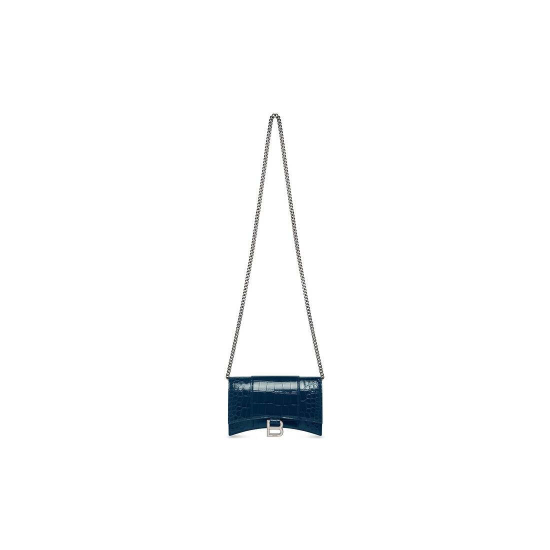 Women's Hourglass Wallet With Chain Crocodile Embossed in Dark Blue