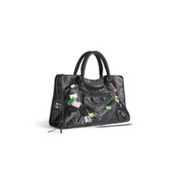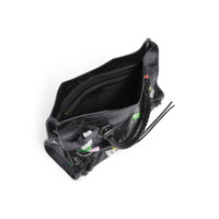 Le City Bag Medium in black Arena lambskin with printed stickers, brass hardware PRODUCT DETAILS • Arena lambskin with printed stickers • Two leather hand-braided handles • Adjustable and removable shoulder strap • Brass hardware • Zipped closure with knotted leather puller • Front zipped pocket with knotted leather puller • 1 inner zipped pocket • Cotton canvas lining • Made in Italy Material: lambskin, calfskin