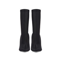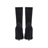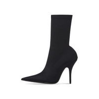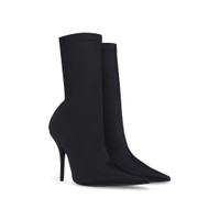 Knife 110mm Bootie in black matte spandex PRODUCT DETAILS • Matte spandex • Bootie • Elongated pointed toe • 110mm arch • Tone-on-tone covered heel • Black outsole • Made in Italy • Wipe with a soft cloth Material: 78% polyamide, 22% elastane