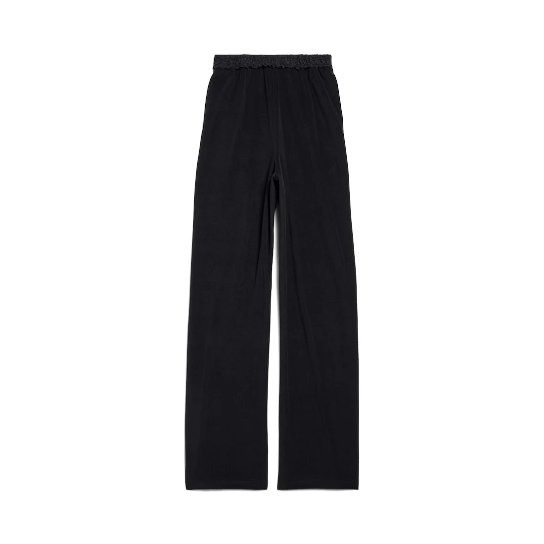 Lace Pyjama Pants in black active velvet for Women PRODUCT DETAILS • Active jersey and lace • Mid-waist • Elasticated waistband with lace detail • 2 slash pockets • Made in Italy Main material: 80% cotton, 20% polyester