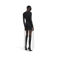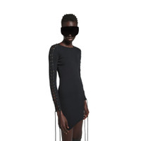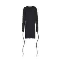 Lace-Up Long Sleeve Dress in black ribbed jersey for Women PRODUCT DETAILS • Ribbed jersey • Crewneck • Long sleeves • Full-length laced sleeves • Metallic eyelets • Extra long laces • Made in Portugal Main material: 100% cotton
