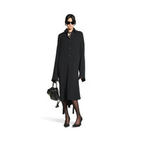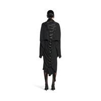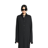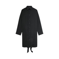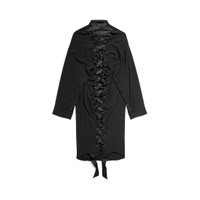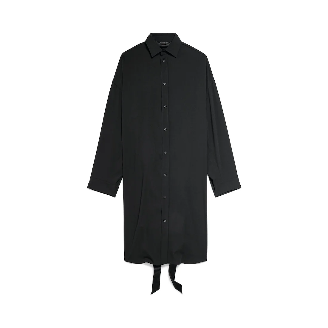 Lace-Up Shirt Dress in black technical crepe PRODUCT DETAILS • Technical crepe • Shirt shape • 8 button front • Long sleeves • Buttoned cuffs • Laced at back with ribbons • Made in Italy Main material: 100% polyester