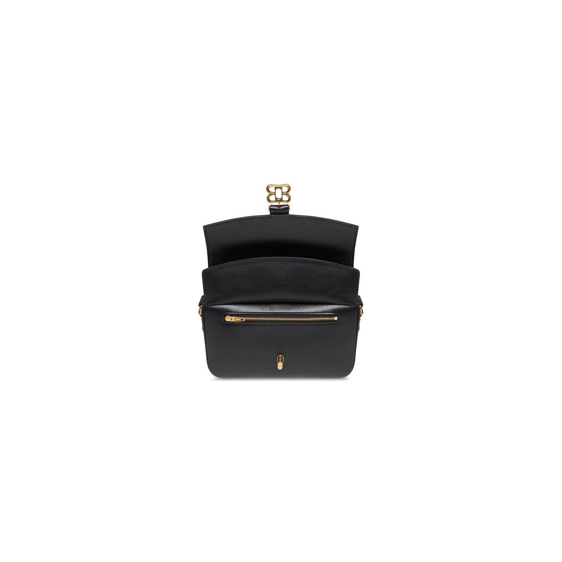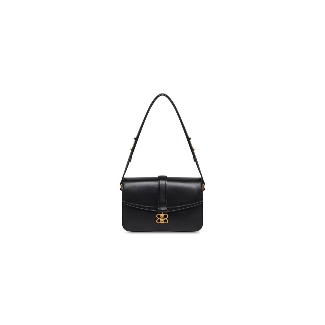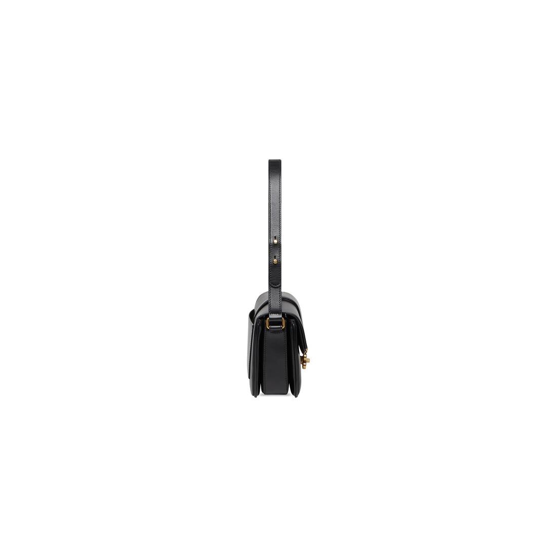 Lady Small Flap Bag in black classic calfskin with aged-gold hardware is from the look 28 of the Balenciaga’s Fall 22, The Lost Tape Collection. PRODUCT DETAILS • Dimensions : L8,6 x H5,9 x W14,9 inch • Classic calfskin • Flap bag • Adjustable shoulder and crossbody strap (14,9 inch) • Aged-gold BB Butterfly hardware • Turn lock closure • Front flap with one zipped pocket • 3 compartments • 1 inner zipped pocket • 1 inner patch pocket • 1 back pocket • Nappa lambskin lining • Made in Italy • Wipe with a soft cloth Material: 100% calfskin