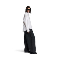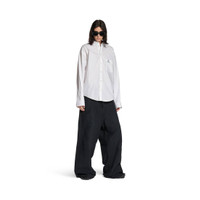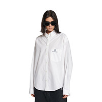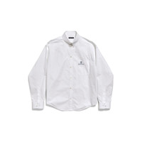 Large Fit Shirt in white cotton poplin PRODUCT DETAILS • Regenarative cotton poplin • Shirt collar • 7 button front • 1 patch pocket at chest • Long sleeves • Buttoned cuffs • Rounded hem • Balenciaga engraved buttons • Nano BB artwork embroidered at chest • Made in Italy Main material: 100% cotton