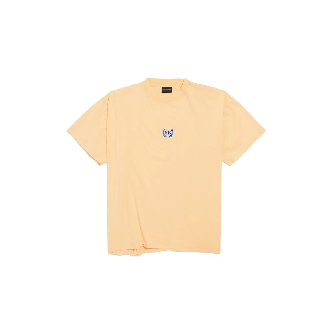 Laurel Classic Boxy T-Shirt in pale yellow dry jersey PRODUCT DETAILS • Dry jersey • Crewneck • Short sleeves • Laurel classic artwork embroidered at chest • Asymmetrical bottom • Worn-out details • Made in Portugal Main materia: 100% cotton