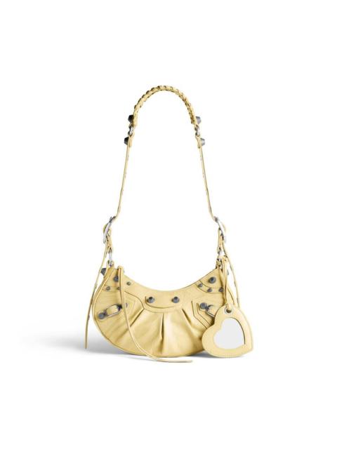 Le Cagole XS Shoulder Bag in light blue Arena lambskin, aged-silver hardware PRODUCT DETAILS • Dimensions: L10,2 x H6,3 x W2,7 inch • Arena lambskin • Shoulder bag • Adjustable shoulder strap (18,1 inch) • Leather braided shoulder pad • Zipped closure with knotted leather puller • Aged-silver hardware •n1 removable heart mirror • Tone-on-tone Balenciaga logo embossed on mirror • Cotton canvas lining • Made in Italy • Wipe with a soft cloth Material: 100% lambskin