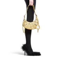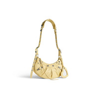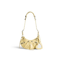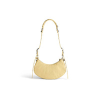 Le Cagole XS Shoulder Bag in light yellow Arena lambskin, aged-silver hardware PRODUCT DETAILS • Dimensions: L10,2 x H6,3 x W2,7 inch • Arena lambskin • Shoulder bag • Adjustable shoulder strap (18,1 inch) • Leather braided shoulder pad • Zipped closure with knotted leather puller • Aged-silver hardware • 1 removable heart mirror • Tone-on-tone Balenciaga logo debossed on mirror • Cotton canvas lining • Made in Italy • Wipe with a soft cloth Material: 100% lambskin