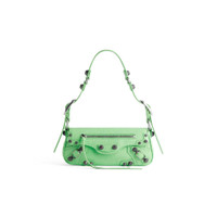 Le Cagole XS Sling Bag in light green Arena lambskin, aged-silver hardware PRODUCT DETAILS • Dimensions: L9 x H5,1 x W1,6 inch • Arena lambskin • Sling bag • Adjustable shoulder strap (drop: 8,7 inch) • Studded magnet closure • Front zipped pocket with knotted leather puller • Aged-silver hardware • 1 main compartment • 1 zipped back pocket with knotted leather puller • Cotton canvas lining • Made in Italy • Wipe with a soft cloth Material: 100% lambskin
