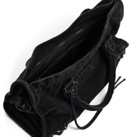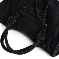 Le City Bag Medium in black washed denim, brass hardware PRODUCT DETAILS • Dimensions: L15,1 x H9,4 x W5,3 inch • Cotton, polyester and polyamide • Two handles • Adjustable and removable shoulder strap (drop: 20,8 inch) • Brass hardware • Zipped closure with knotted denim puller • Front zipped pocket with knotted denim puller • 1 inner zipped pocket • Cotton canvas lining • Made in Italy Material: cotton, polyester, polyamide