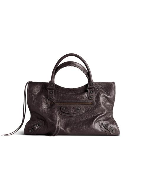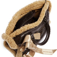 Le City Bag Medium in brown calfskin and beige shearling, brass hardware PRODUCT DETAILS • Calfskin, shearling and polyester • Two leather hand-braided handles • Adjustable and removable shoulder strap • Ribbon with Balenciaga logo on the front • Brass hardware • Zipped closure with knotted leather puller • Front zipped pocket with knotted leather puller • 1 inner zipped pocket • Cotton canvas lining • Made in Italy Material: calfskin, shearling, polyester