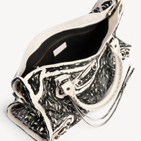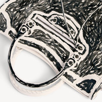 Le City Bag Medium in white snow semi shiny Arena lambskin with black marker printed, brass hardware PRODUCT DETAILS • Marker printed on semi shiny Arena lambskin • Two leather hand-braided handles • Adjustable and removable shoulder strap • Brass hardware • Zipped closure with knotted leather puller • Front zipped pocket with knotted leather puller • 1 inner zipped pocket • Cotton canvas lining • Made in Italy Material: lambskin