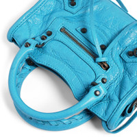 Le City Bag Nano in bleu cyan Arena lambskin, brass hardware PRODUCT DETAILS • Arena lambskin • Two leather hand-braided handles • Removable and adjustable shoulder strap • Brass hardware • Zipped closure with knotted leather puller • Front zipped pocket with knotted leather puller • 1 main compartment • Cotton canvas lining • Made in Italy Material: lambskin