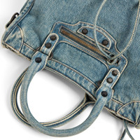 Le City Bag Small in blue washed denim, brass hardware PRODUCT DETAILS • Dimensions: L11,8 x H7,5 x W3,9 inch • Washed demin • Two handles • Removable and adjustable shoulder strap (drop: 19,7 inch) • Brass hardware • Zipped closure with knotted denim puller • Front zipped pocket with knotted denim puller • 1 inner zipped pocket • Cotton canvas lining • Made in Italy Material: cotton, polyester, polyamide