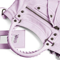 Le City First Bag in parma Arena Storico lambskin, brass hardware PRODUCT DETAILS • Dimensions: L13,1 x H7,8 x W2,5 inch • Arena Storico lambskin • Two leather hand-braided handles • Removable and adjustable strap with shoulder pad (drop: 9,8 inch) • Shoulder and hand carry • Brass hardware • Zipped closure with knotted leather puller • Front zipped pocket with knotted leather puller • 1 main compartment • 1 inner zipped pocket • 1 removable mirror • Balenciaga blind-embossed on the back of the mirror • Cotton canvas lining • Made in Italy • Please note that the bag is sold without charms Material: lambskin