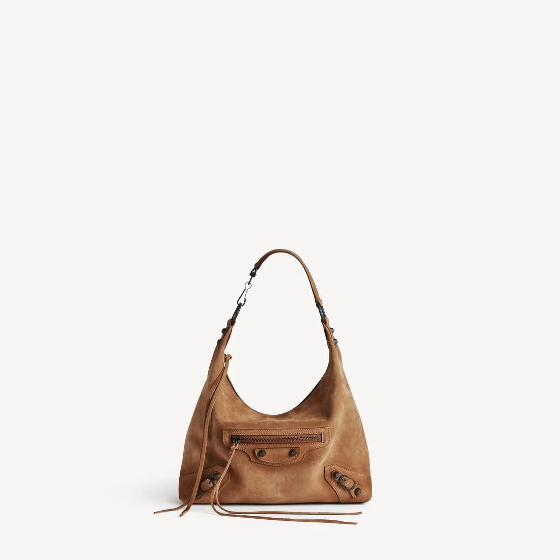 Le City Hobo Bag Small in camel waxed suede calfskin, brass hardware PRODUCT DETAILS • Waxed suede calfskin • Hobo bag • One handle • Adjustable and removable strap • Crossbody, shoulder and hand carry • Brass hardware • Front zipped pocket with knotted leather puller • Zipped closure with knotted leather puller • 1 main compartment • 1 inner zipped pocket • Cotton canvas lining • Made in Italy Material: calfskin