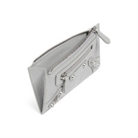 Le City Long Coin And Card Holder in light grey Arena Storico lambskin PRODUCT DETAILS • Dimensions: L5,3 x H3,1 x W0,4 inch • Arena Storico lambskin • Long coin and card holder • Balenciaga logo debossed tone-on-tone at back • Shiny silver hardware • Front zipped pocket • 1 zipped coin pouch • 1 receipt compartment • 5 card slots • Made in Italy Material: lambskin