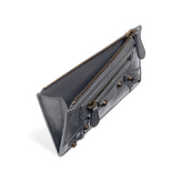 Le City Long Coin And Card Holder in volcanic rock Arena Storico lambskin PRODUCT DETAILS • Dimensions: L5,3 x H3,1 x W0,4 inch • Arena Storico lambskin • Long coin and card holder • Balenciaga logo debossed tone-on-tone at back • Brass hardware • Front zipped pocket • 1 zipped coin pouch • 1 receipt compartment • 5 card slots • Made in Italy Material: lambskin