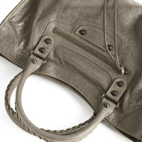 Le City Medium Bag in army green Arena Storico lambskin, brass hardware PRODUCT DETAILS • Dimensions: L14,6 x H9,2 x W5,9 inch • Arena Storico lambskin • Two leather hand-braided handles • Removable shoulder strap (drop: 13,4 inch) • Brass hardware • Zipped closure with knotted leather puller • Front zipped pocket with knotted leather puller • 1 inner zipped pocket • Cotton canvas lining • Made in Italy lambskin
