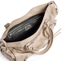 Le City Medium Bag in beige Arena lambskin, shiny silver hardware PRODUCT DETAILS • Dimensions: L14,6 x H9,2 x W5,9 inch • Arena lambskin • Two leather hand-braided handles • Removable shoulder strap (drop: 13,4 inch) • Shiny silver hardware • Zipped closure with knotted leather puller • Front zipped pocket with knotted leather puller • 1 inner zipped pocket • Cotton canvas lining • Made in Italy Material: lambskin