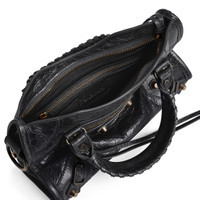 Le City Mini Bag in black Arena Storico lambskin, brass hardware PRODUCT DETAILS • Dimensions: L9,4 x H6,3 x W2,5 inch • Arena Storico lambskin • Two leather hand-braided handles • Removable shoulder strap (drop: 17,7 inch) • Brass hardware • Zipped closure with knotted leather puller • Front zipped pocket with knotted leather puller • 1 inner zipped pocket • Cotton canvas lining • Made in Italy Material: lambskin