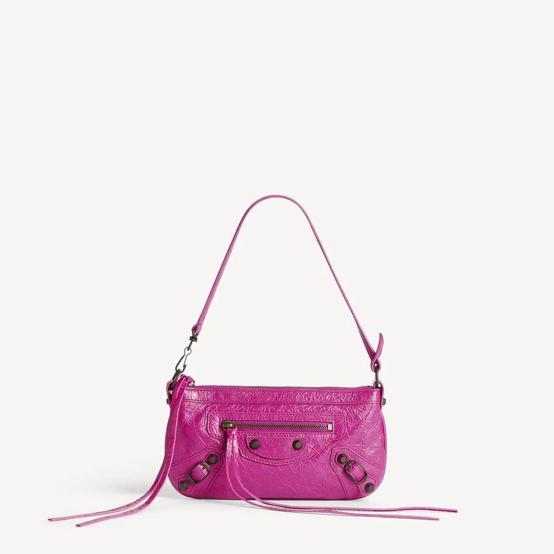 Le City Pouch On Strap in azalee Arena lambskin, brass hardware PRODUCT DETAILS • Arena lambskin • Pouch • One shoulder strap • Adjustable and removable strap • Crossbody and shoulder carry • Brass hardware • Zipped closure with knotted leather puller • Front zipped pocket with knotted leather puller • 6 inner card slots • Cotton canvas lining • Made in Italy Material: lambskin