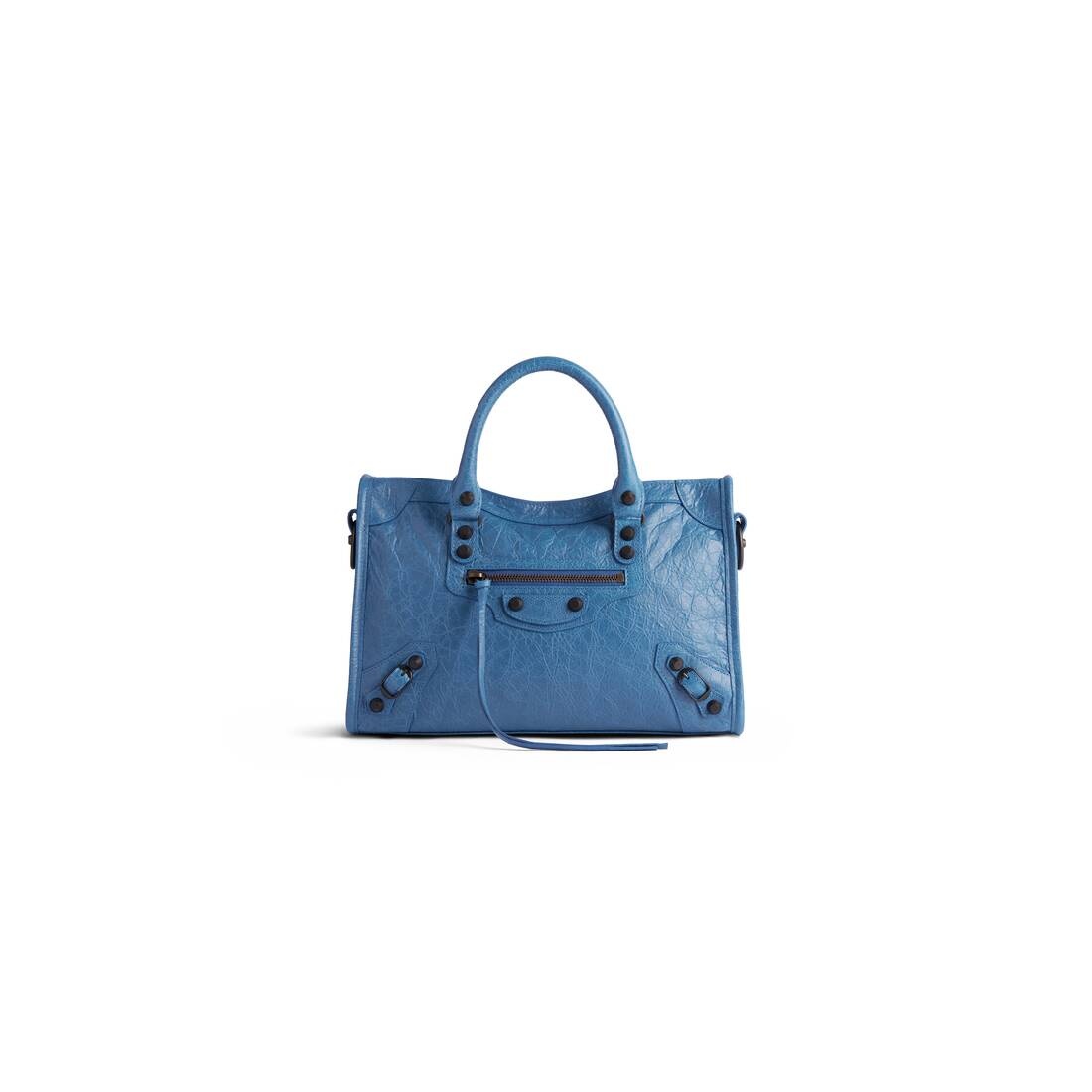 Le City Small Bag in blue Arena Storico lambskin, brass hardware PRODUCT DETAILS • Dimensions: L11,8 x H7,5 x W3,9 inch • Arena Storico lambskin • Two leather hand-braided handles • Removable and adjustable shoulder strap (drop: 19,7 inch) • Brass hardware • Zipped closure with knotted leather puller • Front zipped pocket with knotted leather puller • 1 inner zipped pocket • Cotton canvas lining • Made in Italy Material: lambskin