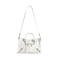 Le City Small Bag in white Arena Storico lambskin, brass hardware PRODUCT DETAILS • Dimensions: L11,8 x H7,5 x W3,9 inch • Arena Storico lambskin • Two leather hand-braided handles • Removable and adjustable shoulder strap (drop: 19,7 inch) • Brass hardware • Zipped closure with knotted leather puller • Front zipped pocket with knotted leather puller • 1 inner zipped pocket • Cotton canvas lining • Made in Italy Material: lambskin
