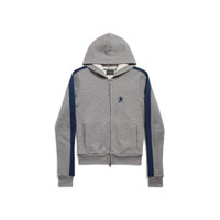 Lion Zip-Up Hoodie in dark heather grey and washed navy dry fleece is from look 23 of Balenciaga's Spring 26 Collection. PRODUCT DETAILS • Dry fleece • Hood without drawstring • Dropped shoulders • Double-ended zip fastening • Contrasting sleeve bands • 2 pockets at front • Gathered at cuffs and waistline • Lion artwork embroidered on chest • Made in Portugal Main material: 100% cotton