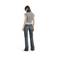 Luxury Script Shrunk T-Shirt in dark heather grey and blue interlock stretch jersey for Women PRODUCT DETAILS • Interlock stretch jersey • Crewneck • Ultra short sleeves • Cropped at bottom • Luxury script artwork embroidery on front • Made in Portugal Main material: 100% cotton