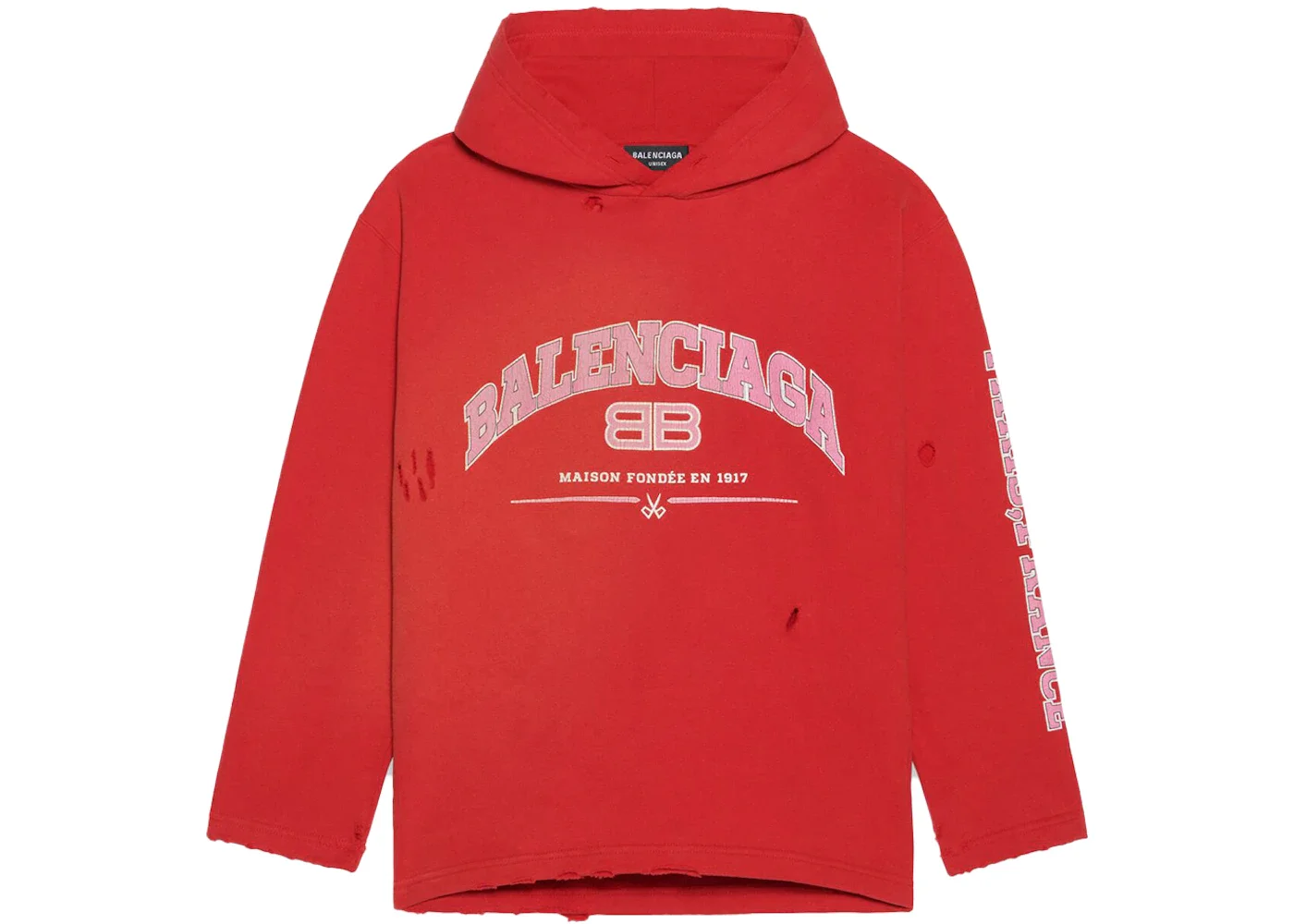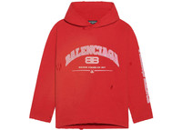 Maison Balenciaga Cropped Hoodie in red medium fleece is from the look 27 of the Balenciaga’s Spring 22, Clones Collection. PRODUCT DETAILS • Medium fleece • Unifit • Regular fit • Rippings allover the fabric • Hood without drawstring • Maison Balenciaga artwork printed at front and on the left sleeve • Worn-out effect • Made in Portugal • Dry cleaning • Model is 187 cm / 6'13'' and is wearing a FR size S Material: 100% cotton