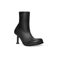 Mallorca 80mm Bootie in black fake nappa stretch PRODUCT DETAILS • Fake nappa stretch • Bootie • Round toe • 80mm arch • Flip heel • Balenciaga logo embossed tone-on-tone on exterior • Tone-on-tone sole • Made in Italy • Wipe with a soft cloth Material: 52% polyurethane, 48% polyester
