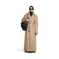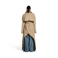 Women's Maxi Deconstructed Trench Coat in Dark Beige