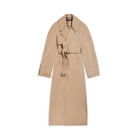 Maxi Deconstructed Trench Coat in dark beige cotton twill PRODUCT DETAILS • Cotton twill • Large fit • Trench lapel • Raglan sleeves • Buttoned storm flap at front • 1 button single-breasted at front • Tone-on-tone belt with buckle • 6 belt loops • 3 slash pockets at front • 1 buttoned pocket at back • Deconstructed tailoring details all over • Zipped and buttoned cuffs • Large inverted U-shaped opening at back hem • Ankle length • Made in Italy • Dry cleaning • Model is 179 cm / 5'10" and is wearing a FR size 36 Material: 100% cotton