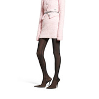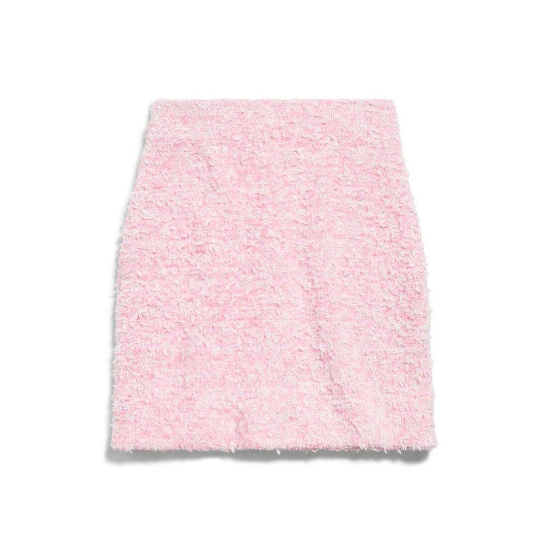 Mini Skirt in pink cotton tweed knit is from look 43 of Balenciaga Fall 24 collection. PRODUCT DETAILS • Cotton tweed knit • Mid-waist • Partial V-zip at back • Mini length • Made in Italy Material: 72% cotton, 26% polyamide, 2% viscose