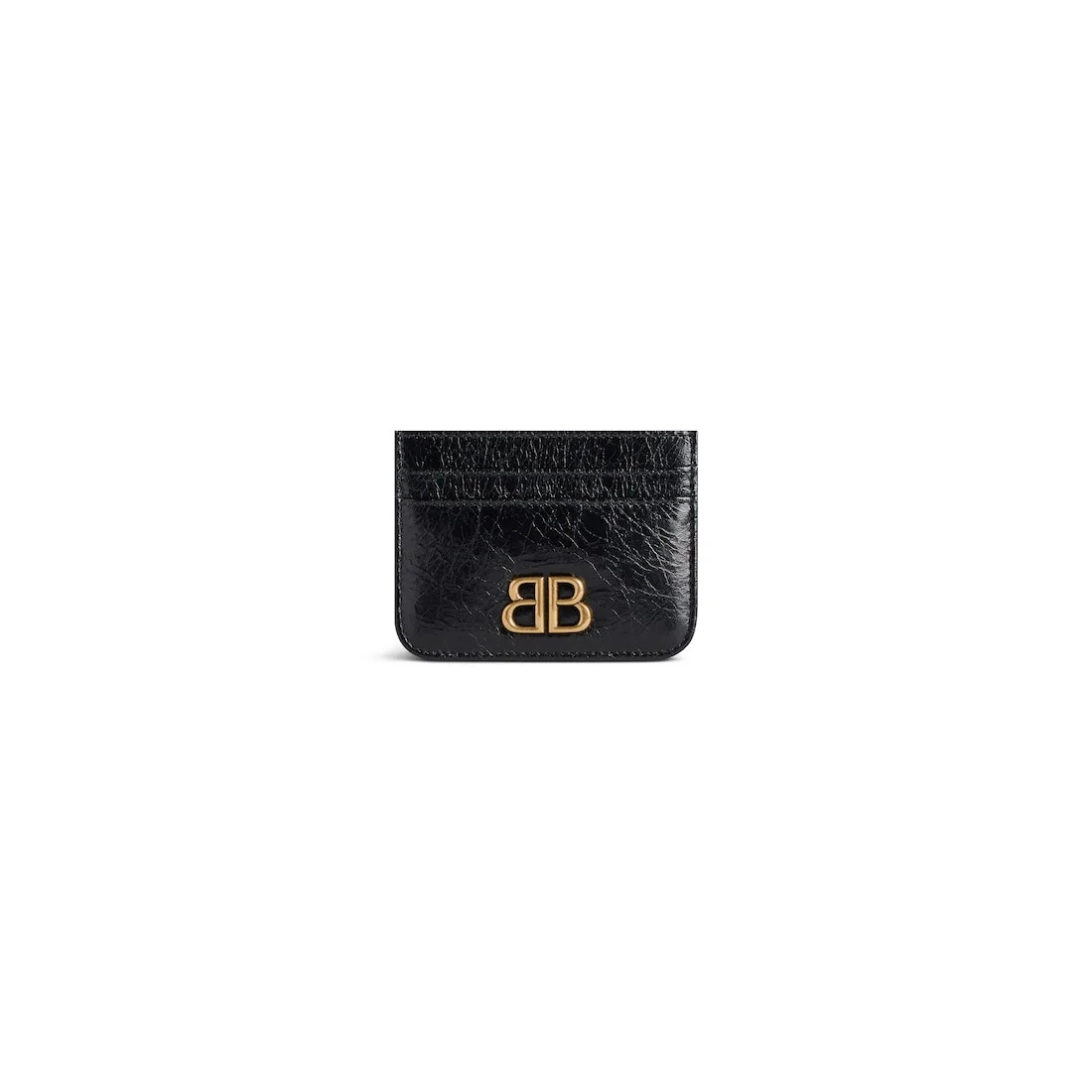 Monaco Card Holder in black puffy Arena lambskin PRODUCT DETAILS • Dimensions: L3,9 x H3,1 x W0,2 inch • Puffy Arena lambskin • Card holder • Aged-gold BB logo hardware • 4 card slots • 1 bill pocket • Made in Italy • Wipe with a soft cloth Material: 100% lambskin