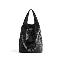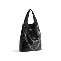 Monaco Large Chain Bag Plus in black Arena calfskin and nylon with aged-silver hardware is from look 37 of Balenciaga Fall 24 Collection. PRODUCT DETAILS • Dimensions: L15,7 x H13,8 x W4,7 inch • Arena calfskin and nylon • Chain and tote bag • Shoulder and crossbody chain strap (drop: 13 inch) • New function: Inner "trompe l'oeil" nylon tote bag attached allowing extra shoulder carry • Aged-silver Monaco BB logo hardware • 1 inner flat pocket at front • 1 inner patch pocket • Nylon lining • Made in Italy Material: calfskin, polyamide
