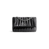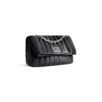Monaco Small Chain Bag in black quilted thin calfskin, aged-silver hardware PRODUCT DETAILS • Dimensions: L11 x H7,1 x W3,9 inch • Quilted thin calfskin • Shoulder chain strap (drop: 8,8 inch) • Aged-silver Monaco BB logo hardware • Flap closure • 1 pocket at front • 1 inner patch pocket • Cotton canvas lining • Made in Italy • Wipe with a soft cloth Material: 100% calfskin