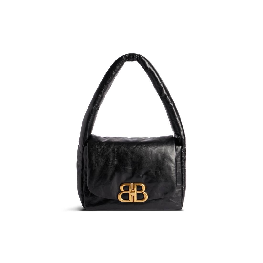 Monaco Small Sling Bag in black soft calfskin, aged-gold hardware PRODUCT DETAILS • Dimensions: L10,6 x H6,3 x W3,9 inch • Soft calfskin • Sling bag • One handle shoulder carry (drop: 7,9 inch) • Aged-gold Monaco BB logo hardware • Turn lock closure • 1 inner zipped pocket • 1 inner flat pocket • Cotton canvas lining • Made in Italy Material: 100% calfskin
