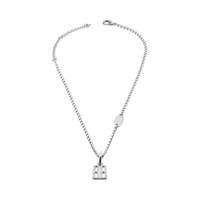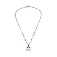 Nano Thin Necklace in silver brass, recycled brass with rhinestones PRODUCT DETAILS • Dimensions: L18,5 x H9,85 x W0,12 inch • Brass, recycled brass and glass • Thin necklace • Nano BB logo pendant with rhinestones • Balenciaga and 10 AV George V 75008 Paris logo engraved on the plate • Clasp closure • Made in Italy • This item is nickel-free, lead-free, and hypoallergenic Material: brass, glass