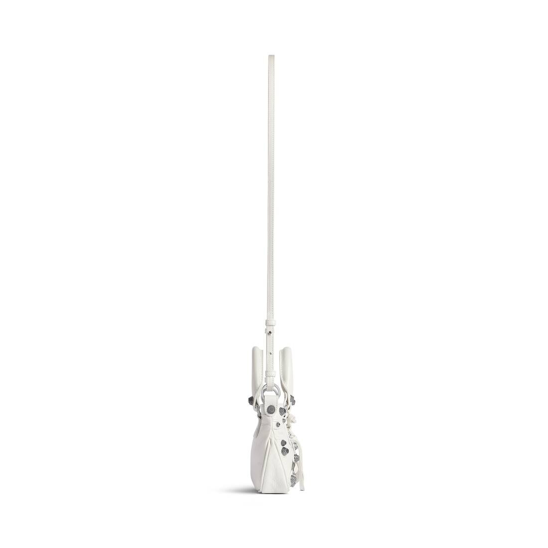 Neo Cagole Mini Tote Bag in white Arena lambskin, aged-silver hardware PRODUCT DETAILS • Dimensions: L7,9 x H4,9 x W0,6 inch • Arena lambskin • Tote bag • Two handles • Adjustable and removable crossbody strap (drop: 20,5 inch) • Aged-silver hardware • Zipped closure with knotted leather puller • Front zipped pocket with knotted leather puller • 1 main compartment • 1 removable heart mirror • Tone-on-tone Balenciaga logo debossed on mirror • Cotton canvas lining • Made in Italy Material: 100% lambskin