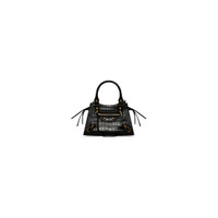Neo Classic XS Handbag in black extra supple crocodile embossed calfskin, aged gold hardware PRODUCT DETAILS • Dimensions : L10,2 x H7,2 x W4,3 inch • Extra supple crocodile embossed calfskin • Trapezoidal shape • Two leather hand-braided handles • Adjustable and removable strap (37,8 inch) • Aged gold hardware • Zipped closure with knotted leather puller • Tone-on-tone Balenciaga logo embossed on front • Front zipped pocket with knotted leather puller • 1 inner flat pocket • Nappa lambskin bonded lining • Made in Italy • Wipe with a soft cloth Material: 100% calfskin