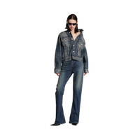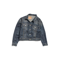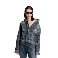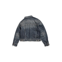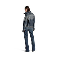 Off-Shoulder Jacket in dark blue cotton denim for Women PRODUCT DETAILS • Cotton denim • Multiple styling possibilities • Designed to be worn off the shoulder • 6 button front • 2 buttoned pockets at chest • 2 slash pockets • Buttoned cuffs • Adjustable buttoning at waist • Balenciaga engraved flex buttons • Made in Japan Main material: 100% cotton